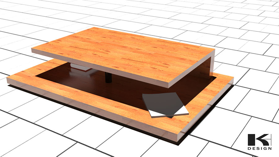 Projet de Table basse minimaliste spacieuse et large avec un contour visible qui entoure la partie supérieure.